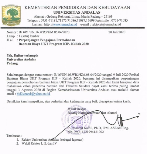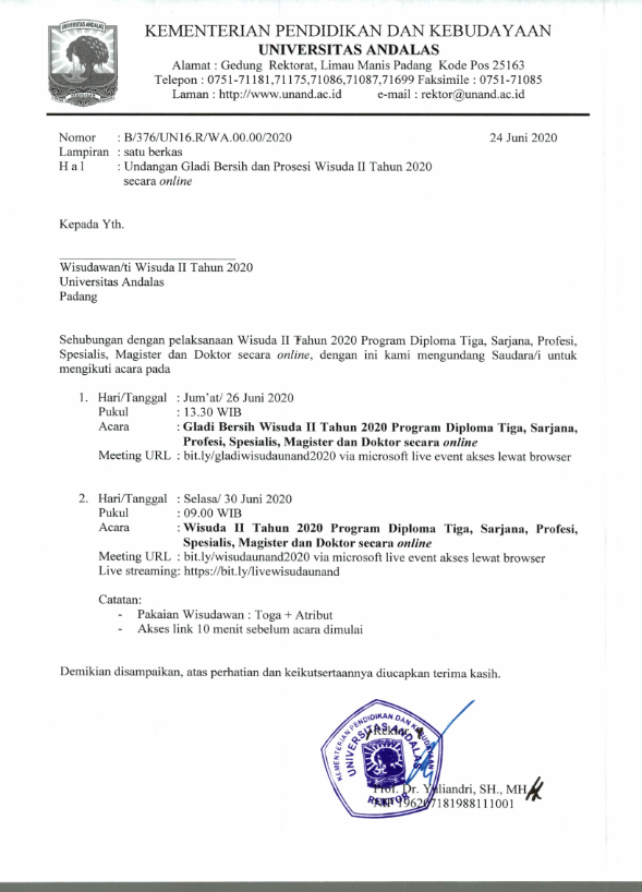 | Awal kuliah | : | 10 Agustus 2020 (bagi yang lulus) |