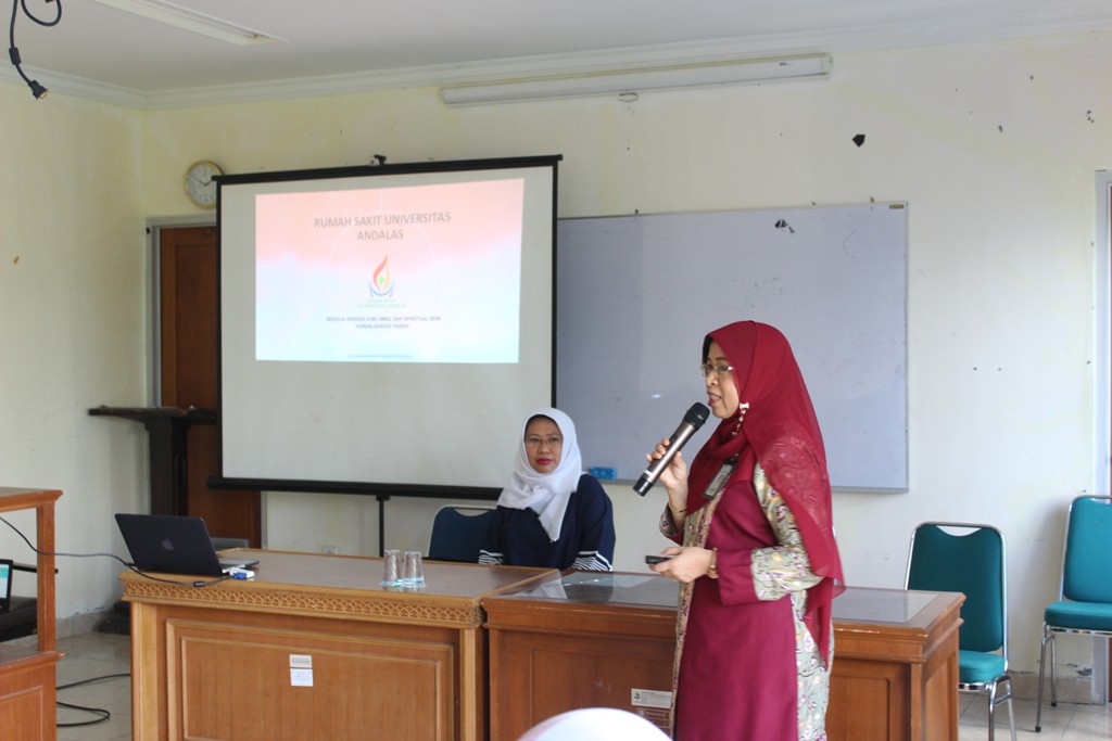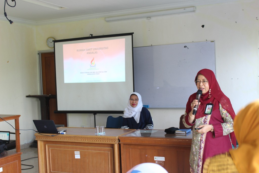 Sosialisasi pelayanan Rumah sakit unand oleh direktur pelayanan medik dan Keperawatan RS unand Dr. dr Arina Widya Murni, Sp.PD-KPSi-FINASIM .
