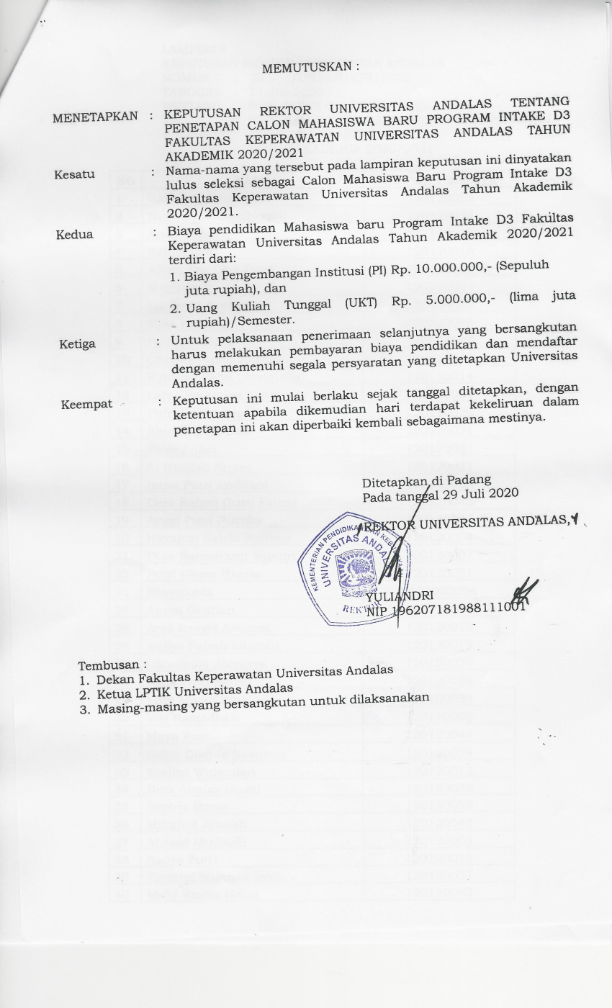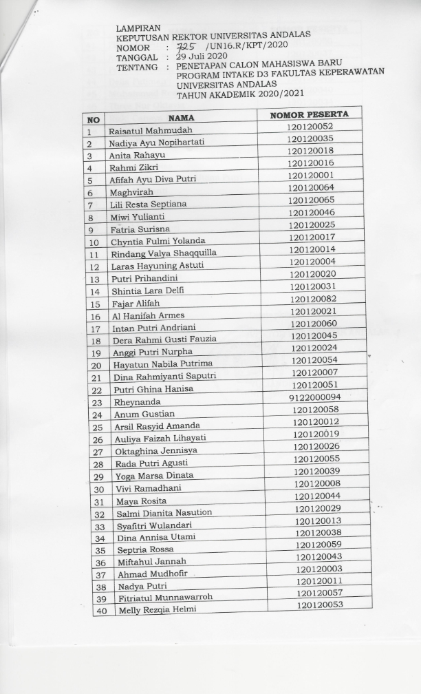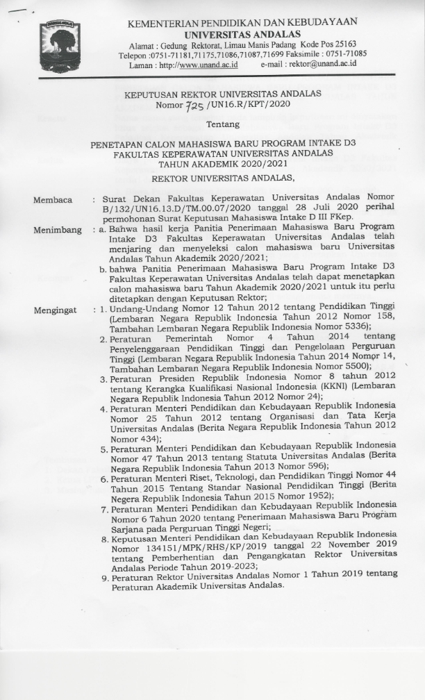 DI UNIVERSITAS ANDALAS MELALUI SELEKSI INTAKE D3 FKEP TAHUN 2020