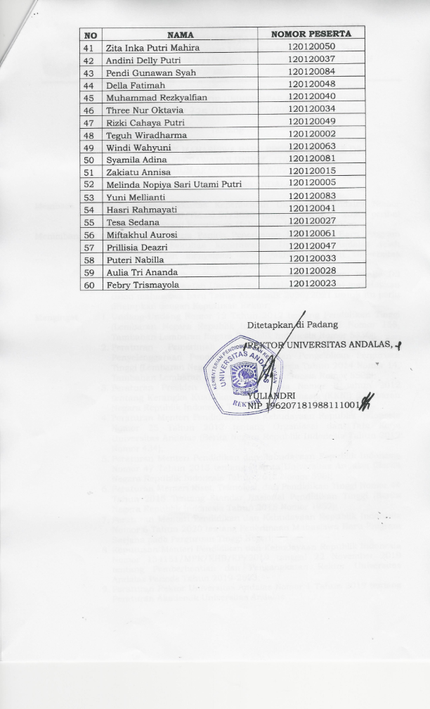 Rektor Unand mengucapkan selamat kepada adik-adik yang telah diterima melalui jalur seleksi SBMPTN 2020. Kelalaian dan kesalahan akibat tidak mengikuti mekanisme pendaftaran ulang yang telah ditentukan dapat mengakibatkan pembatalan kelulusan.