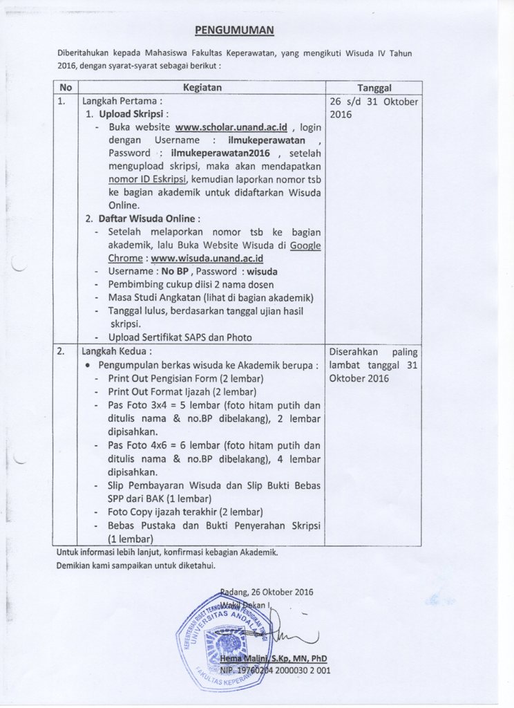 PENGUMUMAN KEPEDA SELURUH MAHASISWA FKEP UNAND