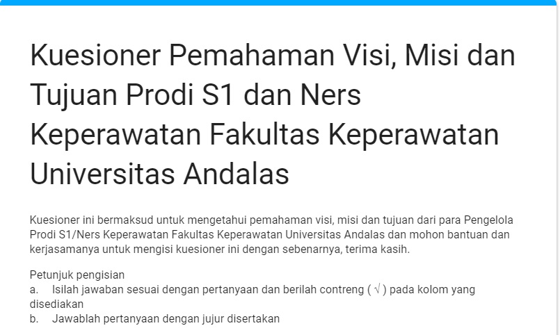 Kuesioner PemahamanVisi, Misi dan Tujuan Prodi S2 Keperawatan Fakultas Keperawatan Universitas Andalas